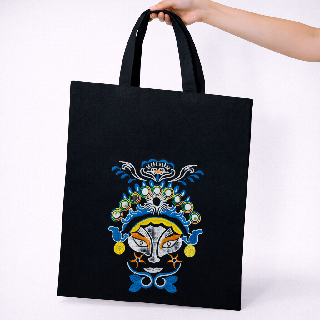 Quality: The Tribal Empress Artistic Tote Bag is a profound masterpiece of cultural storytelling and high-fidelity textile artistry. Expertly constructed from premium, high-density black cotton canvas, this 14×16 inch tote provides a dramatic and sophisticated backdrop that allows the intricate mask-inspired design to achieve maximum visual impact. The choice of deep black canvas for The Tribal Empress Artistic Tote Bag ensures a modern, sleek aesthetic that is highly resistant to the daily rigors of a busy commute. The central artwork is an extraordinary display of hand-painted precision, featuring a complex tribal mask rendered in a vibrant palette of royal blue, sunset orange, and brilliant yellow. To elevate this piece into the realm of boutique luxury, The Tribal Empress Artistic Tote Bag incorporates a mesmerizing 3D mixed-media element: the crown of the mask is adorned with high-relief, shimmering circular accents and golden dangling charms that add a tangible sense of royalty and movement. We utilize only professional-grade, fade-resistant pigments to ensure that the stark whites and deep blues remain as crisp as the day they were painted. Every The Tribal Empress Artistic Tote Bag is built for extreme longevity, featuring industrial-strength, cross-stitched handles and precision-sewn internal seams that can comfortably support your tech accessories, journals, and daily groceries.